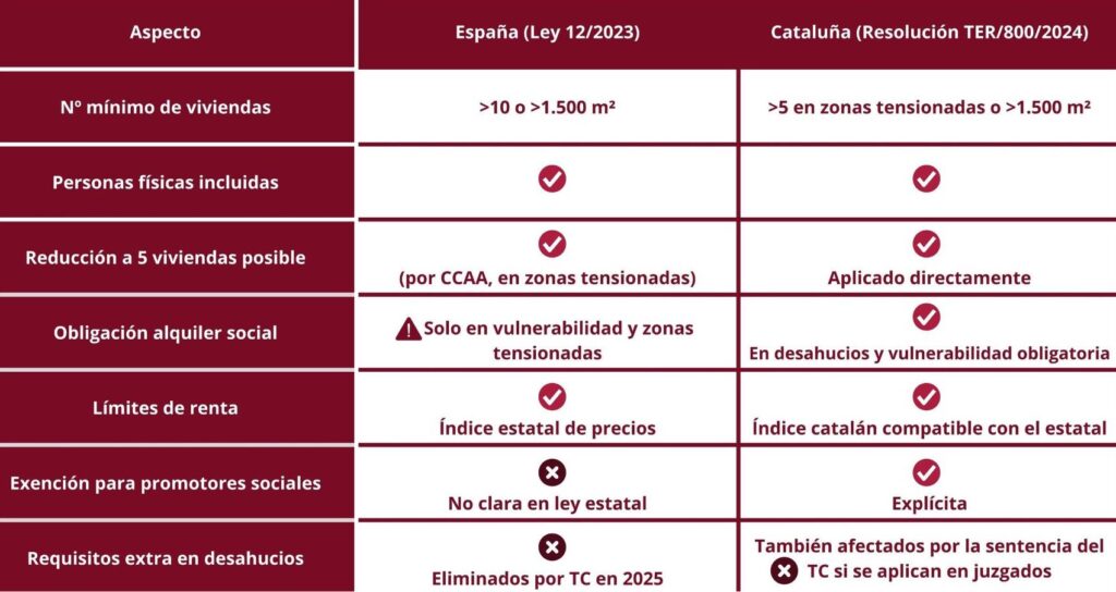 Con la entrada en vigor de la Ley 12/2023, de 24 de mayo, por el Derecho a la Vivienda, su modificación en enero de 2025, y las medidas específicas adoptadas por Cataluña, es clave entender cómo se define actualmente esta figura, qué implicaciones tiene y qué diferencias existen entre territorios.